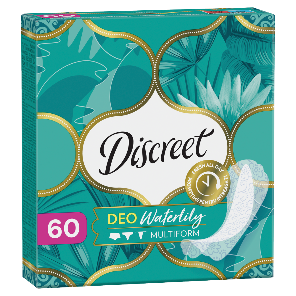 Wkładki Discreet Multiform pomogą Ci poczuć się świeżo i pięknie bez względu na to, jaki jest Twój styl! Te wkładki higieniczne pozwalają swobodnie oddychać skórze miejsc intymnych, co zapewnia uczucie świeżości i komfortu aż do 12 godzin. Są tak cienkie, że nawet ich nie poczujesz, a ich uniwersalny kształt sprawia, że pasują do każdego typu bielizny. Charakterystyczny zapach Waterlily pachnie tak świeżo i kobieco. Bez względu na to, co przyniesie Ci dzień, te wkładki sprawią, że wszystko się uda!