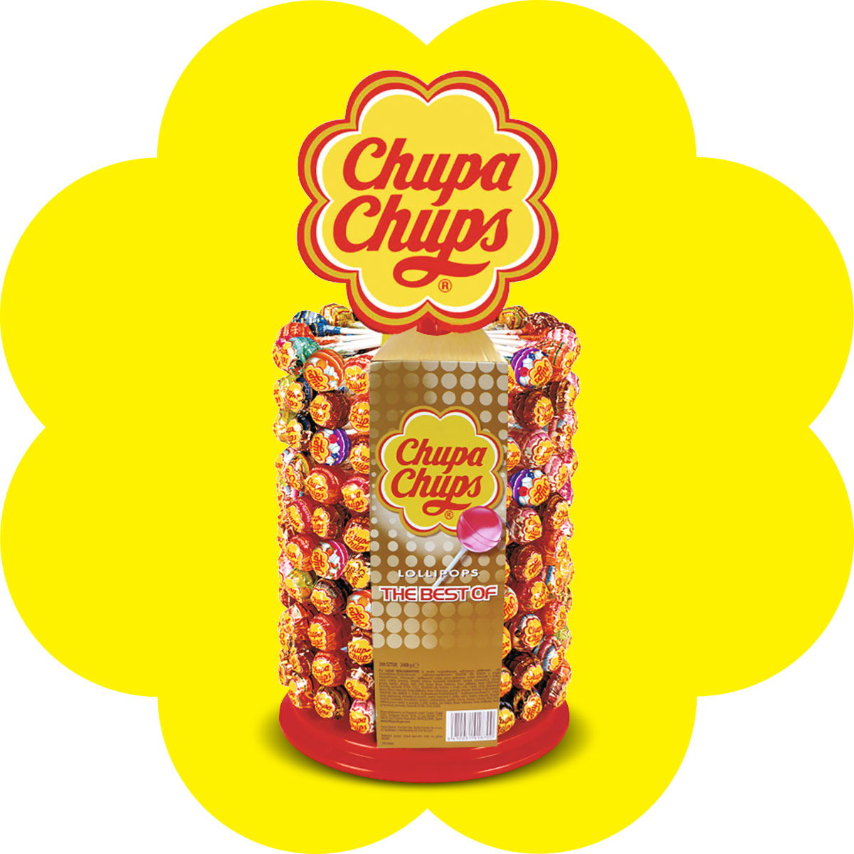 Kultowe i znane na całym świece lizaki Chupa Chups teraz na karuzeli 200 szt. Każdy lizak na stojaku jest zapakowany osobno. Dostępne smaki to truskawka, jabłko, cola, wiśnia i truskawka-śmietana. Zaskocz swoich bliskich słodkim prezentem na imprezę!