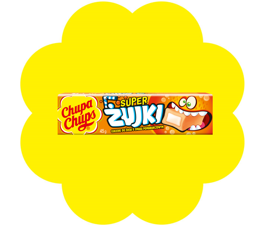 Rozpuszczalne cukierki do żucia Chupa Chups Super Żujki o smaku pomarańczy są pełne owocowego smaku. Dostępne w poręcznym stiku, który mieści się w kieszeni.