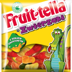 Żelki Fruittella to owocowe żelki w kształcie sympatycznych zwierzaków! Żelki zawierają soki owocowe, a dodatkowo każdy zwierzak ma białą „podeszwę” piankę. Produkt naturalnie barwiony, zawierający naturalne aromaty.
