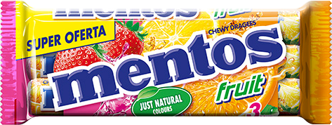 Mentos Fruit to soczyście owocowy mix cukierków do żucia, w najpopularniejszych smakach: truskawki, cytryny i pomarańczy. Dostępne w trzypaku, abyście mogli się nim podzielić z najlbliższymi!