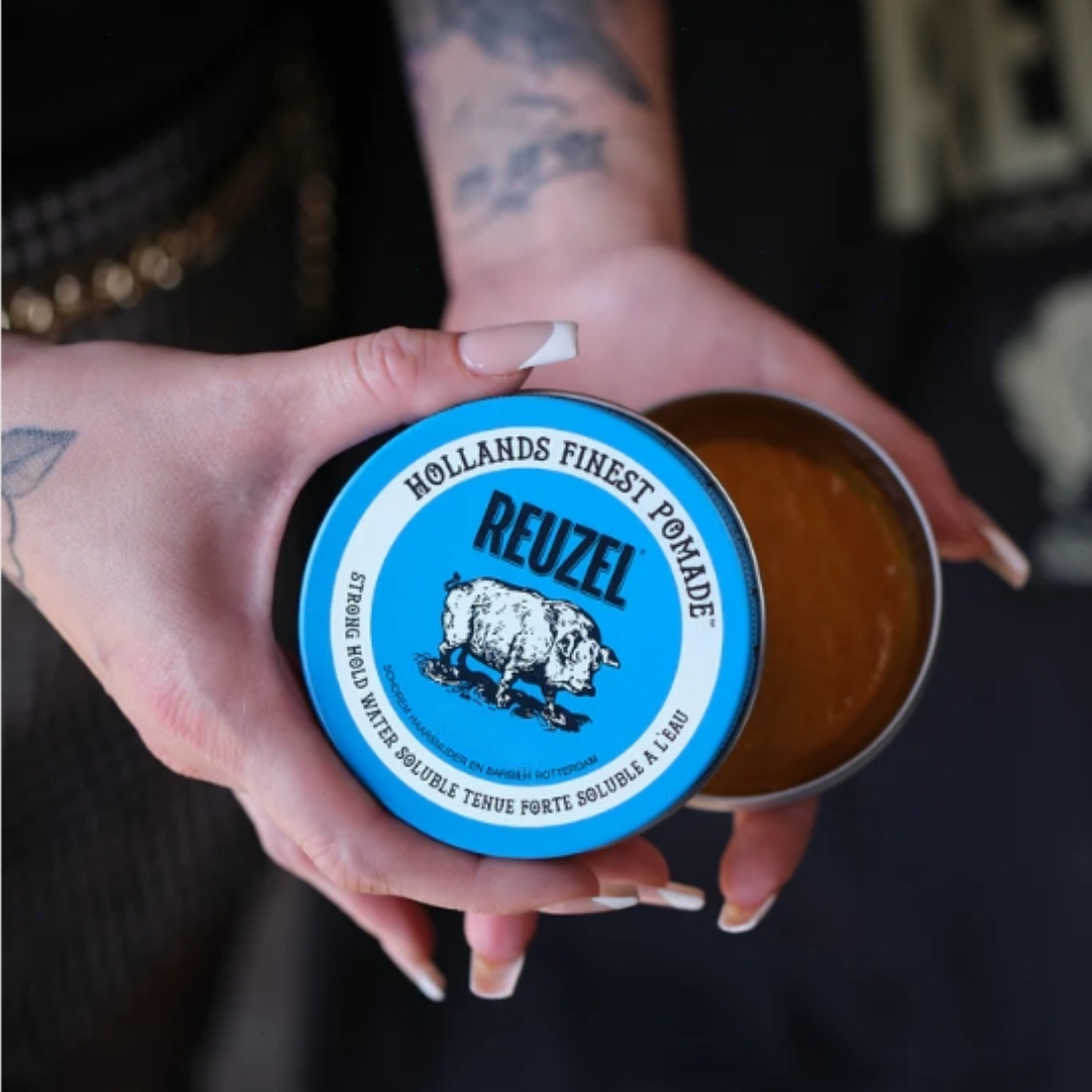 Formuła na bazie wody z łatwością się zmywa, nie pozostawiając osadu ani obciążenia. Pomada REUZEL® Blue zapewnia trwałe utrwalenie i połysk, zachowując elastyczność przez cały dzień. Idealna do gładkich, eleganckich fryzur.