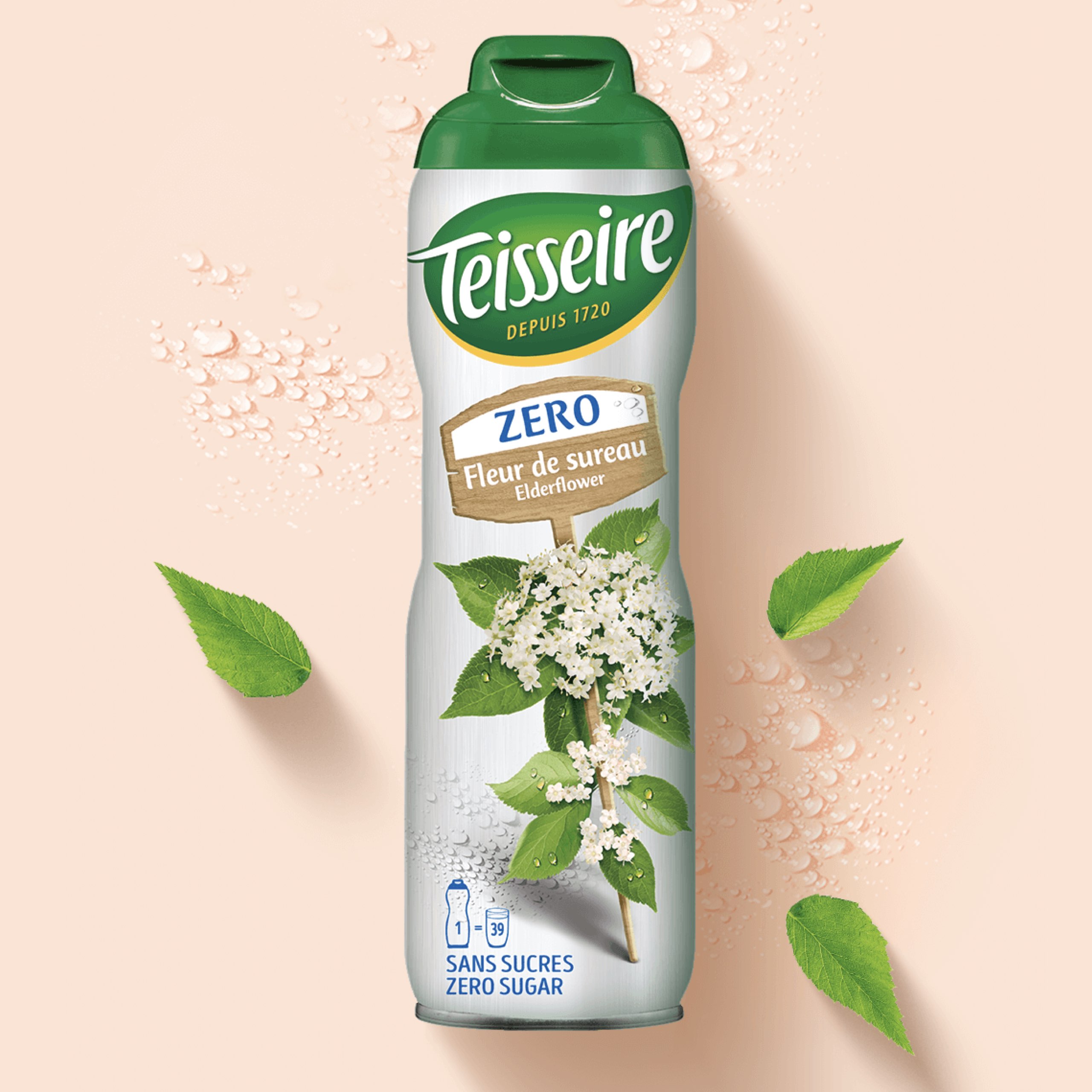 Dodaj odpowiednią ilość koncentratu TEISSEIRE do wody, wymieszaj i ciesz się naturalnym, bezcukrowym smakiem kwiatu bzu.