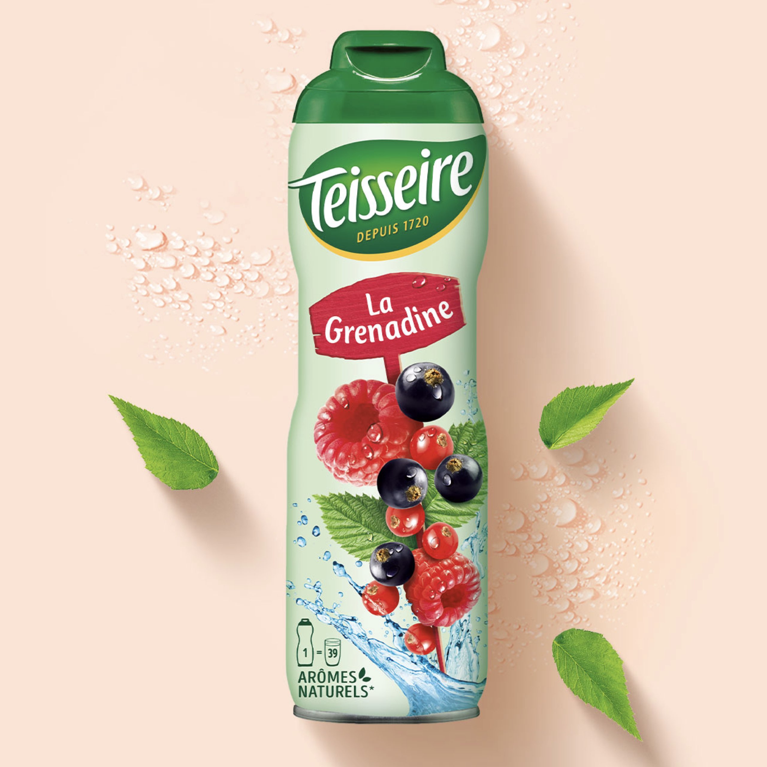 Wystarczy dodać odpowiednią ilość koncentratu TEISSEIRE do wody, wymieszać i cieszyć się naturalnym smakiem grenadyny.