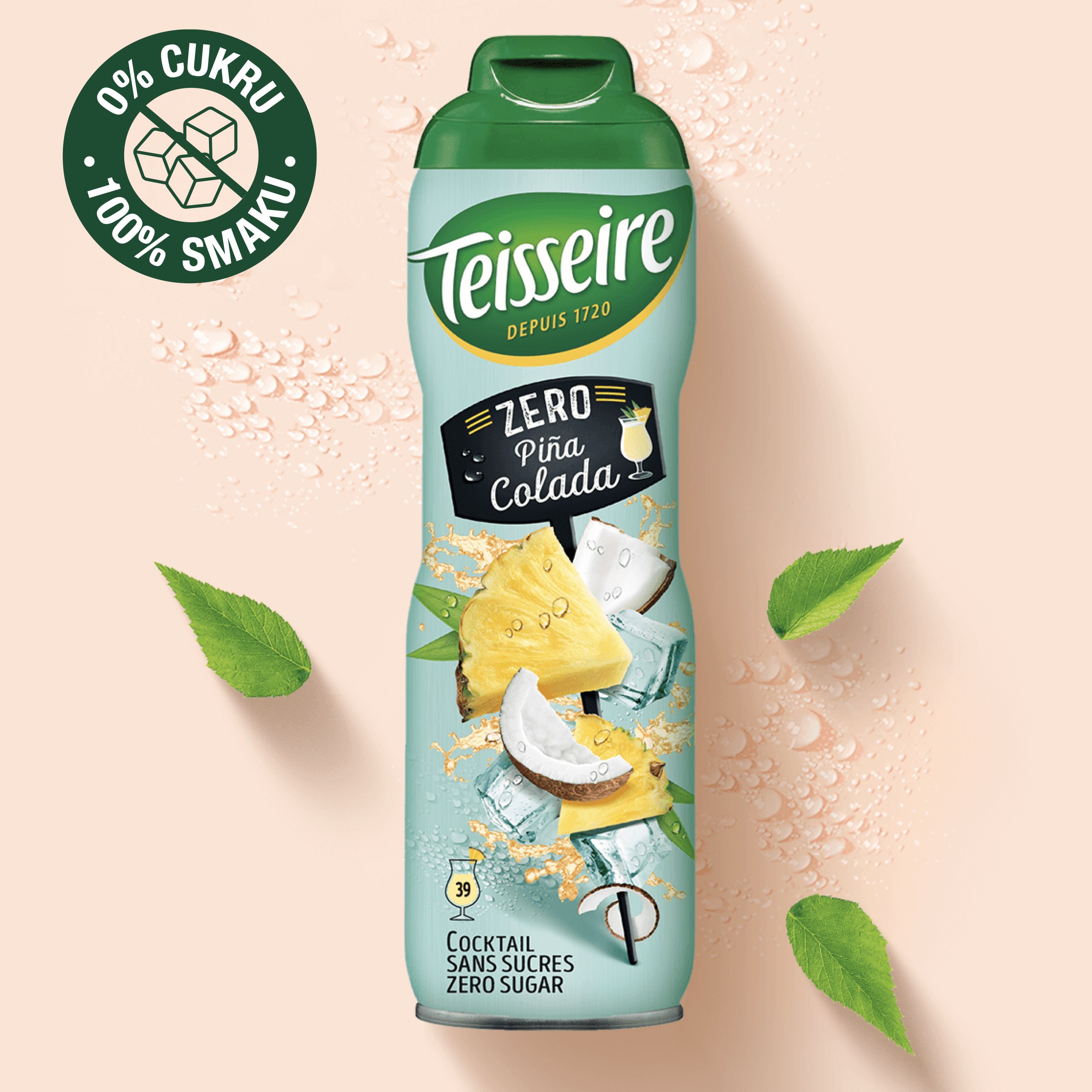 Wystarczy dodać odpowiednią ilość koncentratu TEISSEIRE do wody, wymieszać i cieszyć się naturalnym smakiem pina colady – bez cukru!
