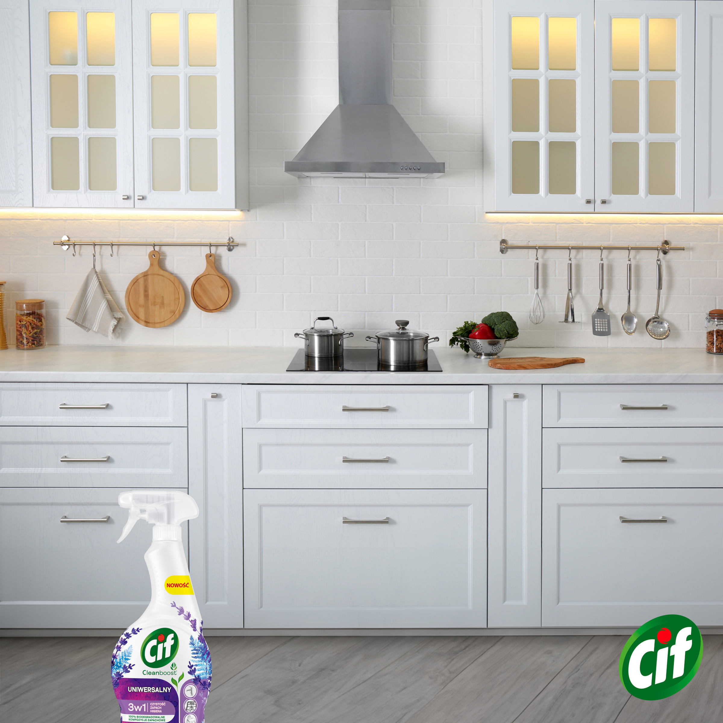 Dzięki uniwersalnemu sprayowi Cif Cleanboost 3w1 Lawenda i Błękitna paproć łazienka i kuchnia odzyskają blask i połysk, a Ty poradzisz sobie nawet z najbardziej uciążliwymi zabrudzeniami.
