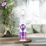 Spray Cif Infinite Clean ma wygodną butelkę z rozpylaczem uławiającym szybkie i bezproblemowe czyszczenie.