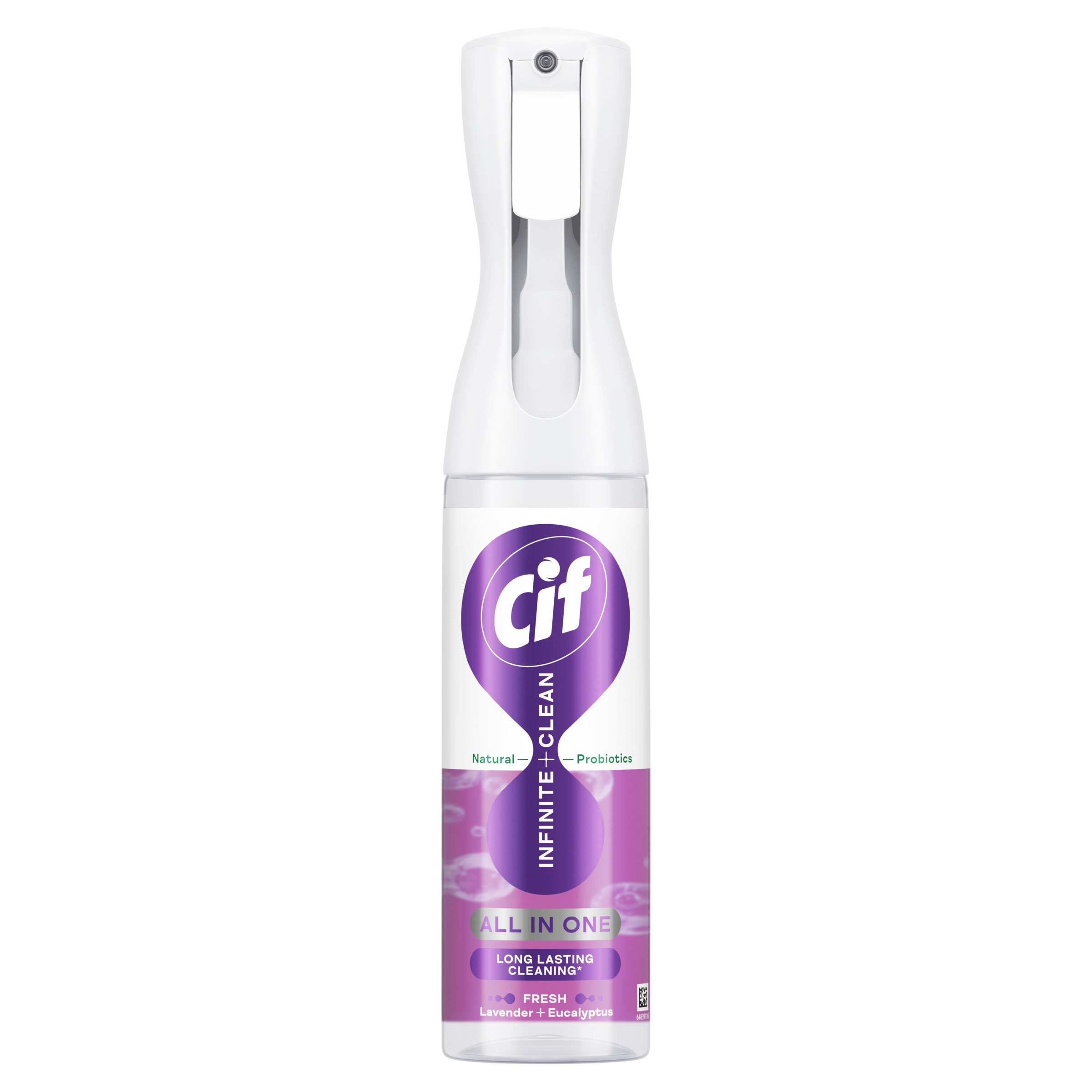 Cif Infinite Clean Fresh Lavender + Eucalyptus to uniwersalny spray do czyszczenia różnego rodzaju powierzchni i sprzętów w całym domu.