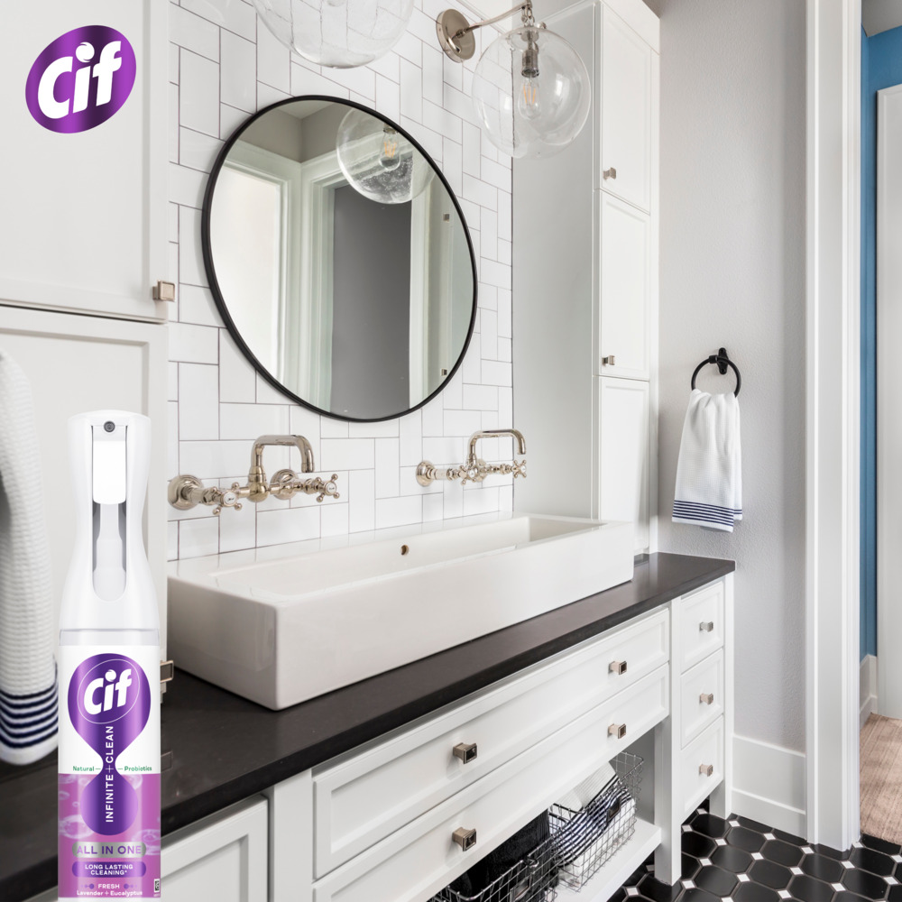 Cif Infinite Clean Uniwersalny Spray Fresh Lavender + Eucalyptus – Twoje codzienne sprzątanie na nowym poziomie! Poznaj innowacyjny środek czyszczący, który łączy skuteczność tradycyjnych detergentów z dobroczynnym działaniem naturalnych probiotyków. Idealny do codziennego czyszczenia różnego rodzaju powierzchni, zapewnia higieniczną czystość i świeżość w Twoim domu. Wszechstronne zastosowanie uniwersalnego sprayu Cif sprawdzi się wszędzie – w kuchni, łazience, a nawet na zewnątrz! Doskonale czyści: