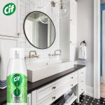 Spray Cif Infinite Clean ma wygodną butelkę z rozpylaczem uławiającym szybkie i bezproblemowe czyszczenie.