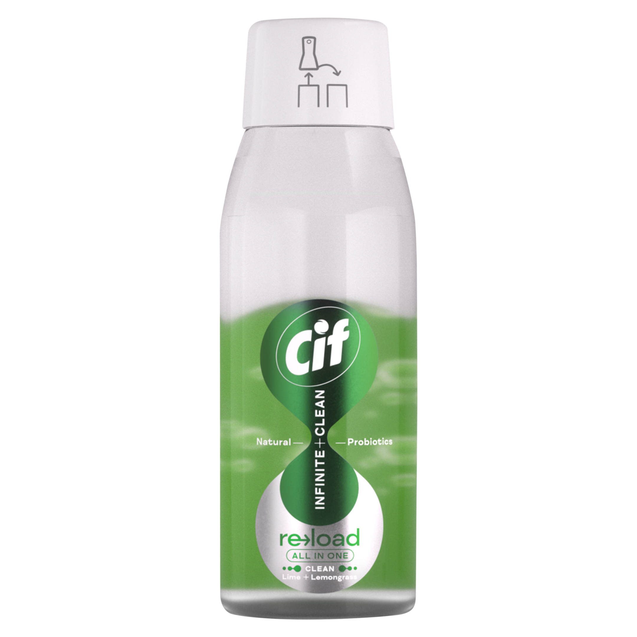 Wkład uzupełniający 590 ml Cif Infinite Clean Lime + Lemongrass – uniwersalnego środka do czyszczenia różnego rodzaju powierzchni i sprzętów w całym domu.