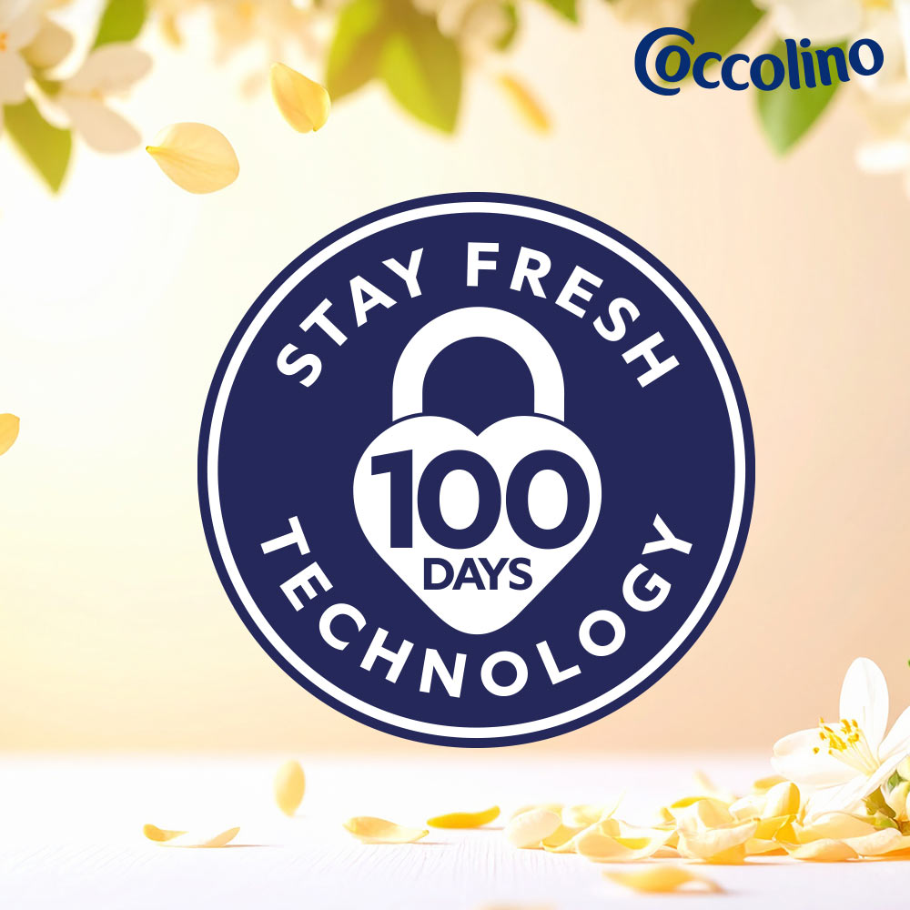 Dzięki technologii Stay Fresh, płyn do płukania Coccolino Fresh&Soft Happy Yellow powoduje, że świeży zapach utrzymuje się na tkaninach wyjątkowo długo – aż do 100 dni.