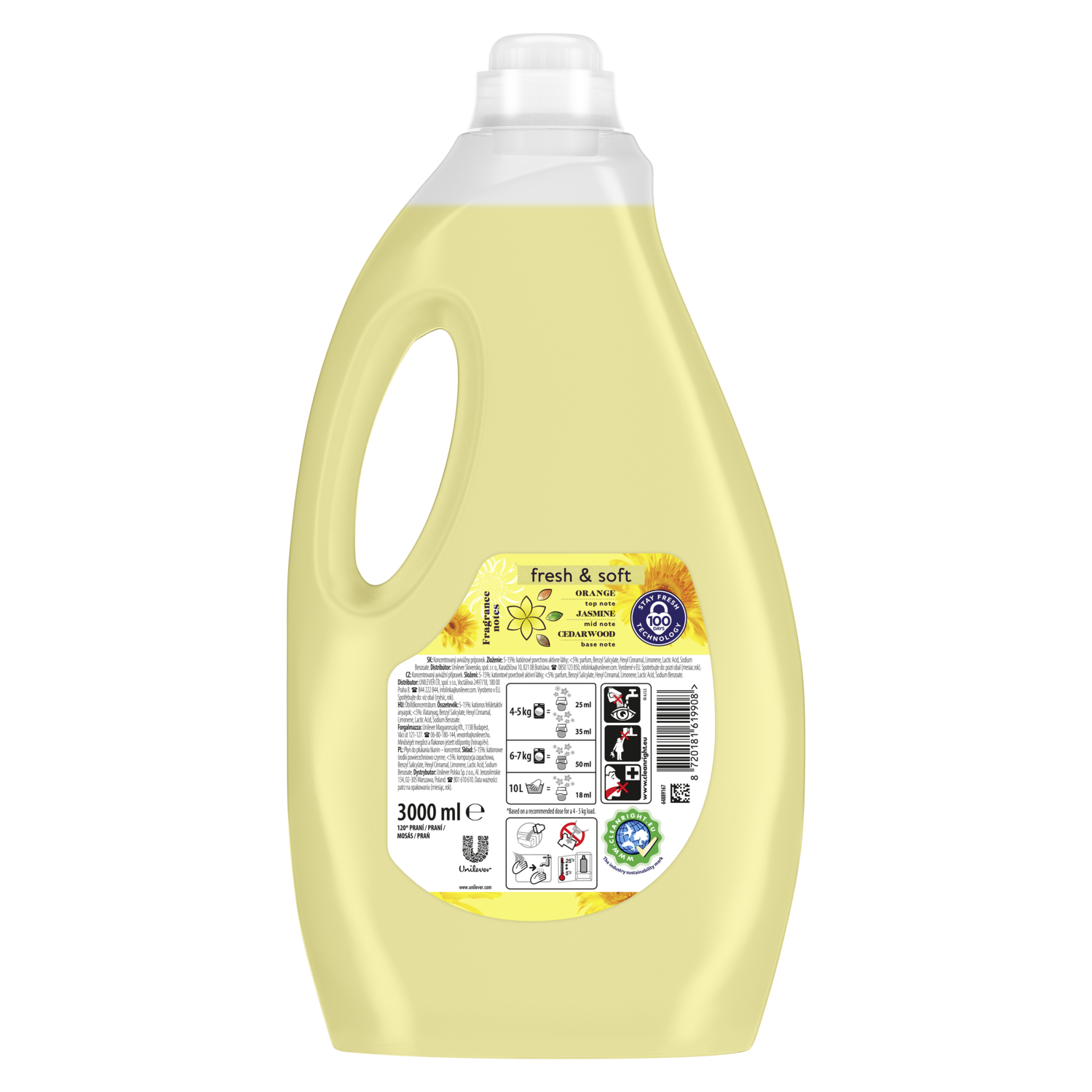 Wystarczy tylko pół nakrętki na jedno pranie, co czyni produkt niezwykle wydajnym: butelka 3 l to długotrwała świeżość i miękkość ubrań dla całej rodziny.