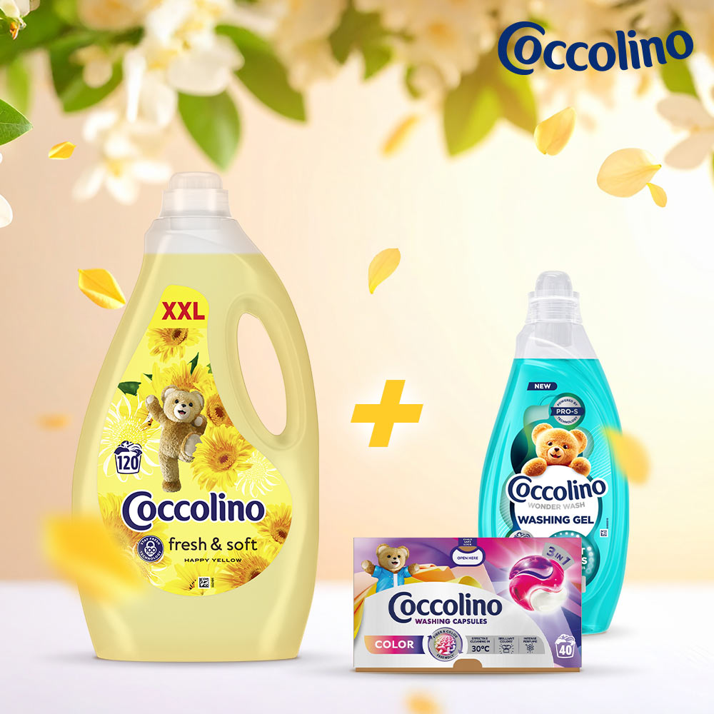 Aby uzyskać maksymalny efekt czystości, miękkości i świeżości, połącz płyn do płukania z żelami lub kapsułkami do prania Coccolino.