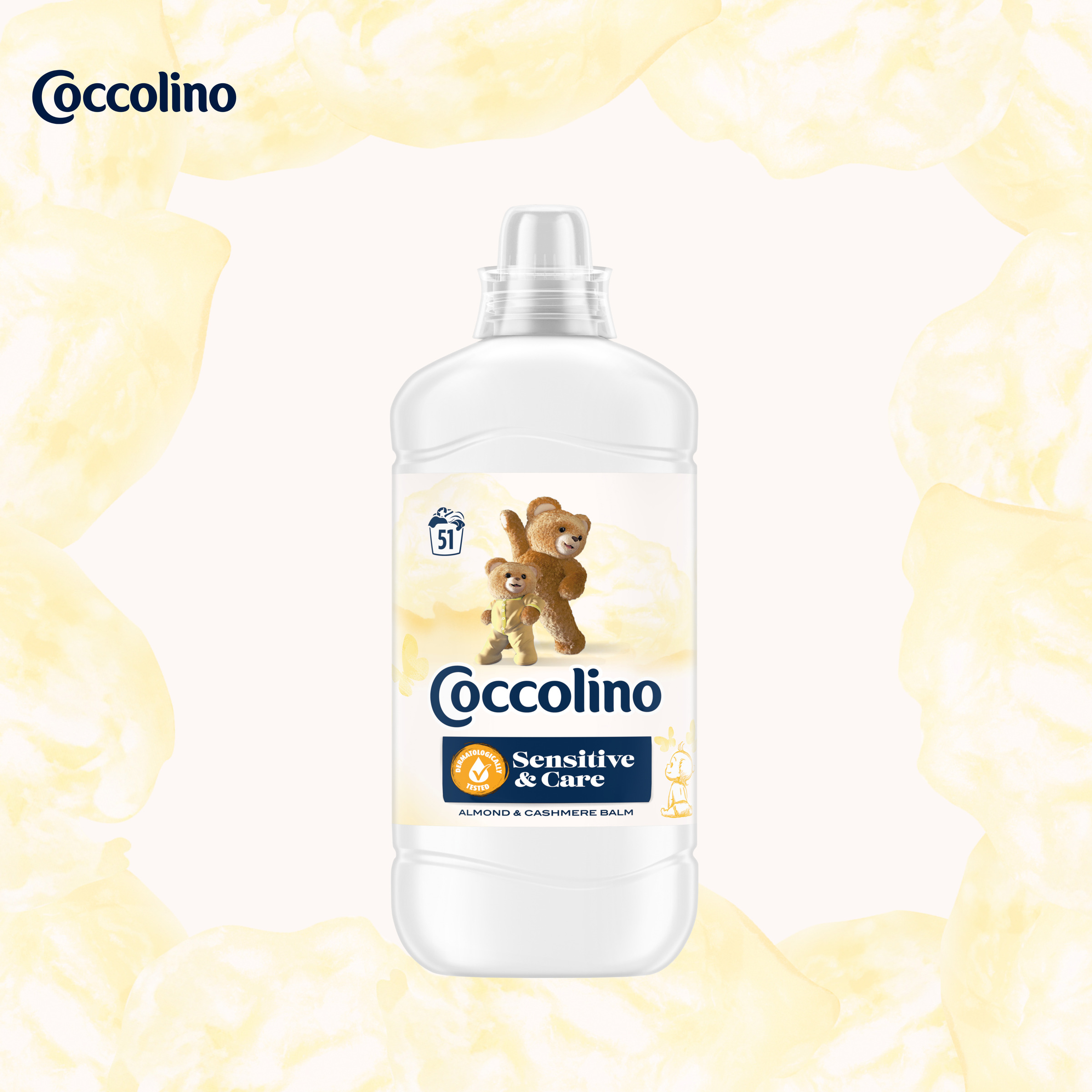 Płyn do płukania tkanin Coccolino Sensitive & Care Almond & Cashmere Balm zapewnia miękkie i pachnące pranie, jednocześnie wyróżniając się specjalną, delikatną dla skóry formułą.