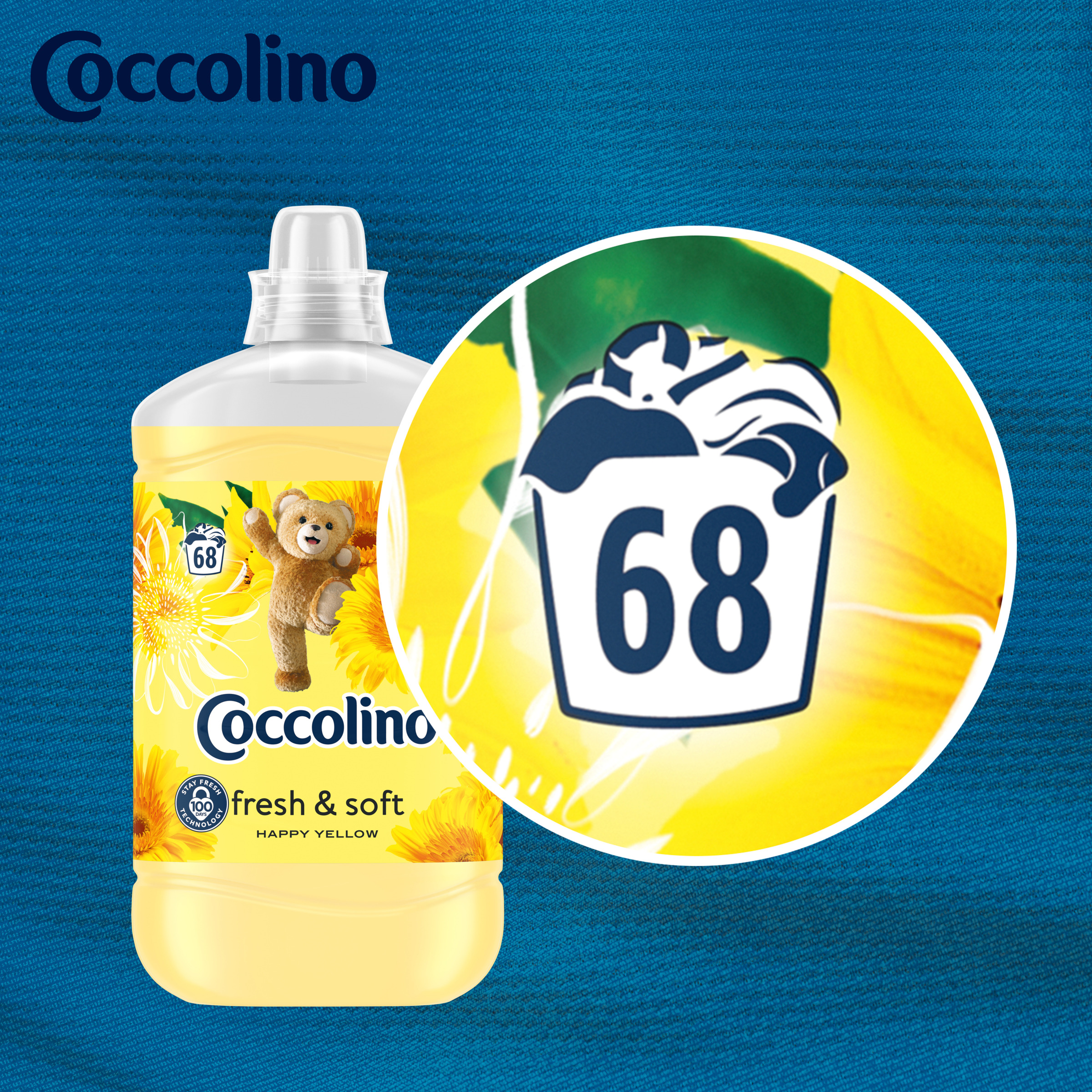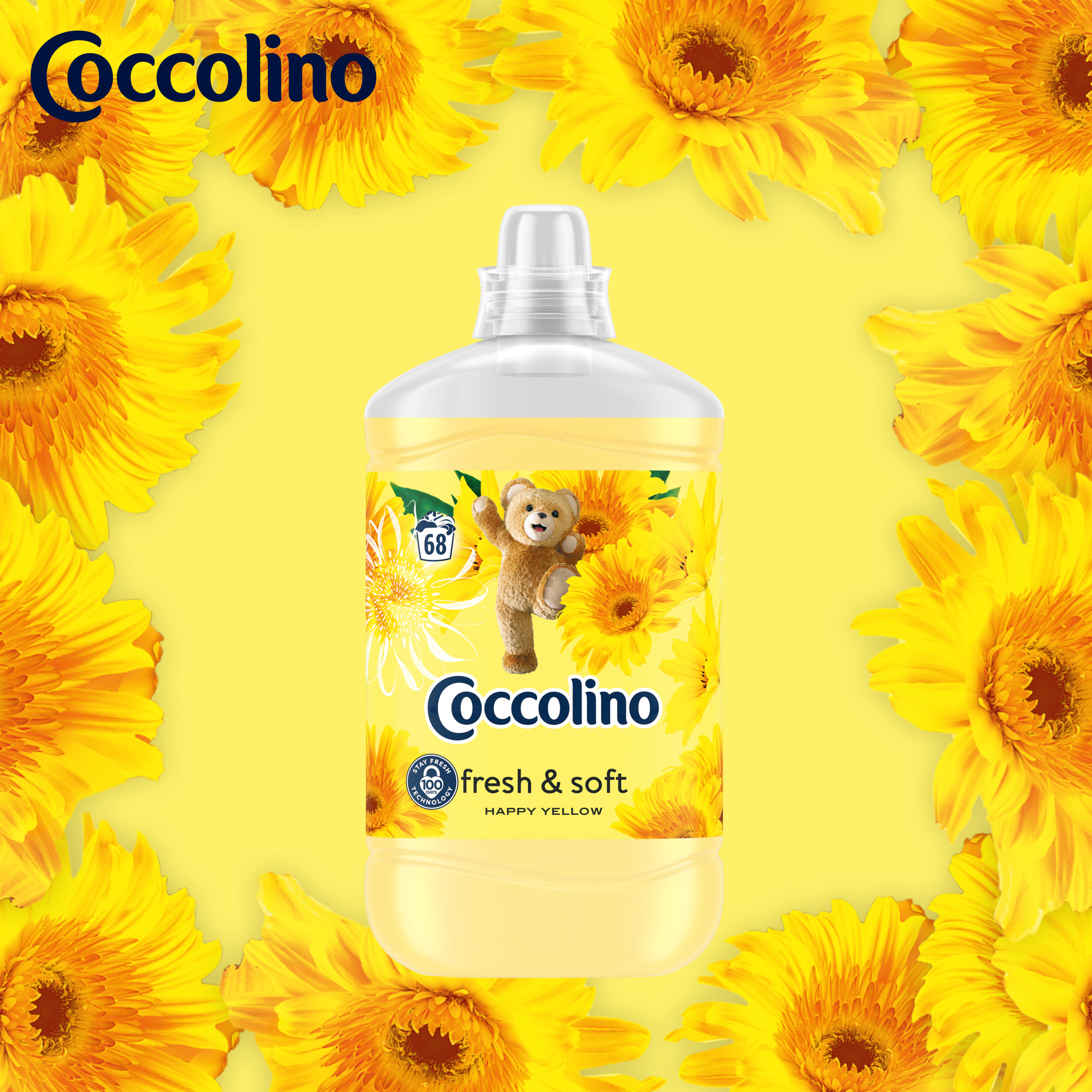 Płyn do płukania tkanin Coccolino Fresh&Soft Happy Yellow zapewnia tkaninom długotrwałą miękkość i świeżość.