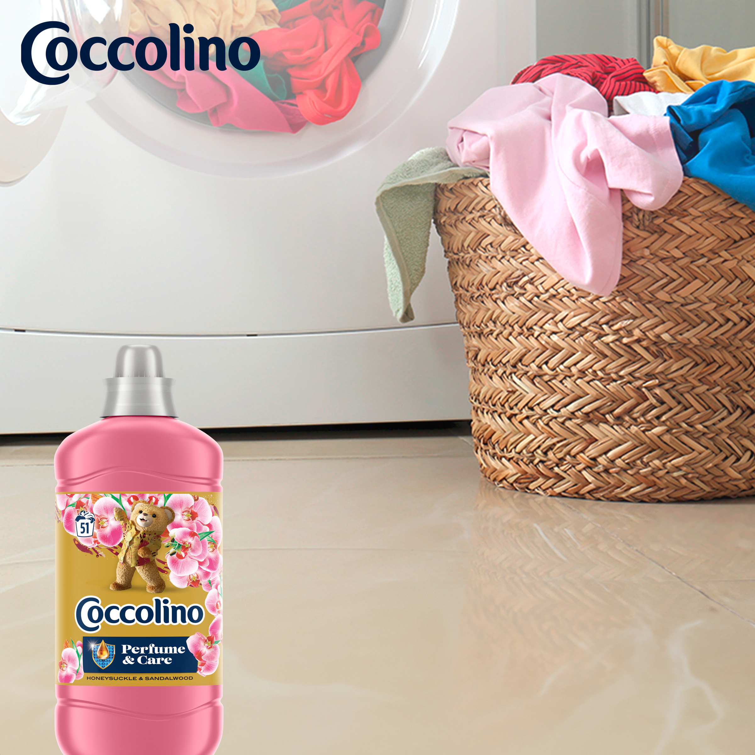Płyn do płukania Coccolino Perfume&Care o zapachu drzewa sandałowego i kwiatu wiciokrzewu to produkt, który nie tylko pielęgnuje ubrania, nadając im wyjątkową miękkość, ale także zapewnia ich długotrwały, piękny zapach.