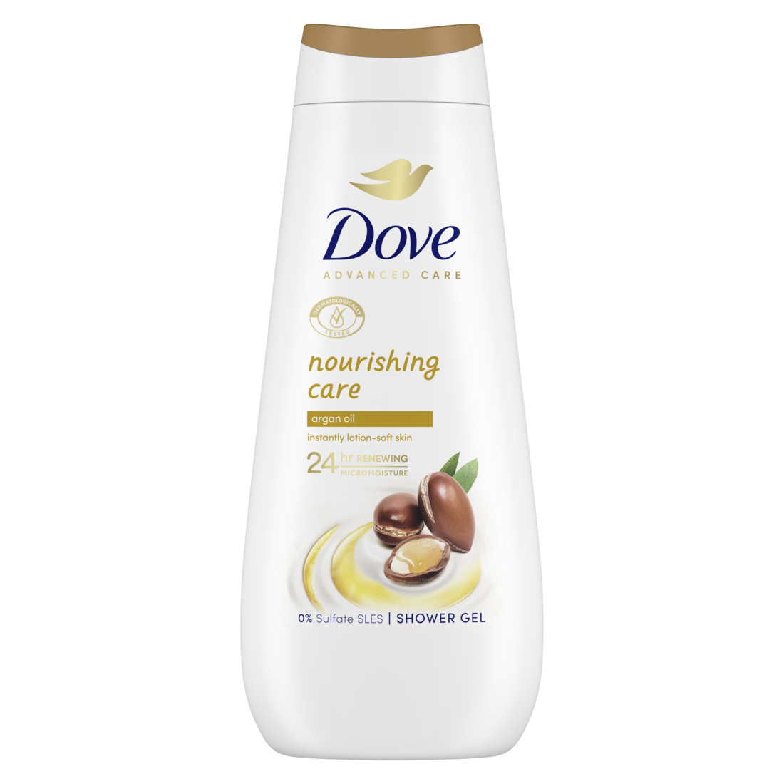Żel pod prysznic Dove Advanced Care Nourishing Care o aksamitnej konsystencji odmienia skórę już po pierwszym użyciu. Pozostawia ją gładką, miękką i intensywnie nawilżoną – jak po użyciu balsamu.