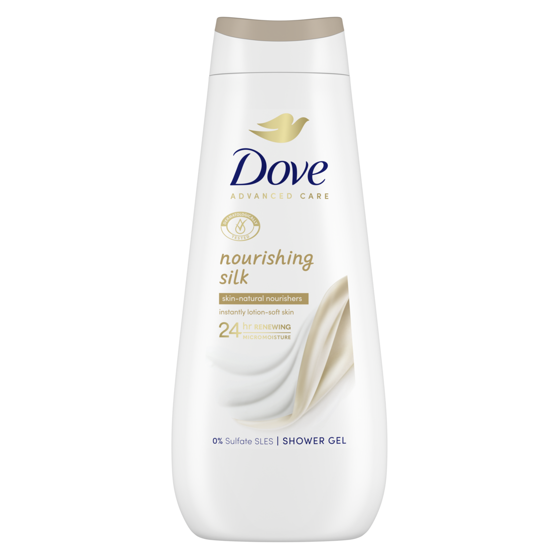 Damski żel pod prysznic Dove Advanced Care Nourishing Silk o wyjątkowo jedwabistej konsystencji odmieni skórę już po jednym prysznicu, pozostawiając ją bardziej miękką, gładką i nawilżoną, zapewniając uczucie jak po użyciu balsamu.