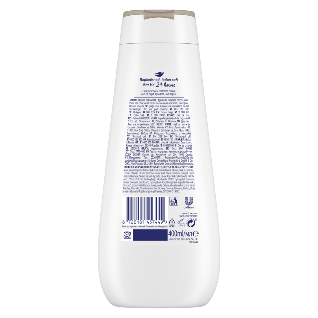 – Żel pod prysznic dla kobiet Dove Advanced Care Nourishing Silk otuli Cię delikatnym, świeżym i kobiecym zapachem – Relaksujący i nawilżający żel pod prysznic Dove Advanced Care zapewni miękkość i nawilżenie skóry przez nawet 24 godziny– prosto spod prysznica – Technologia zastosowana w tym płynie do mycia ciała chroni i odżywia naskórek, pozostawiając skórę gładką, miękką i zregenerowaną, zapewniając uczucie jak po użyciu balsamu – Delikatny żel do kąpieli dla kobiet Dove Advanced Care wzmacnia naturalną barierę ochronną skóry – Damski płyn pod prysznic nie był testowany na zwierzętach nigdzie na świecie, oraz jest odpowiedni dla wegan, co potwierdzono certyfikatem PETA – Żel do kąpieli Dove Advanced Care posiada przyjazną środowisku formułę, która ulega biodegradacji w 98%