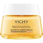 VICHY NEOVADIOL MAGISTRAL SPF 50 – Odżywczy krem łączący Proksylan, ekstrakt z Kasji, Niacynamid (witaminę B3) oraz odżywcze kwasy Omega 3-6-9 z filtrem SPF 50 o szerokim spektrum działania, chroniącym skórę przed szkodliwymi skutkami promieniowania UVA i UVB. Koryguje zmarszczki. Redukuje przebarwienia. Poprawia elastyczność.