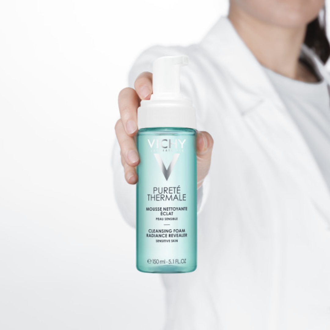 Vichy Pureté Thermale Mousse to lekka pianka oczyszczająca do twarzy o delikatnej konsystencji na bazie wody termalnej z Vichy, która głęboko oczyszcza i odświeża. Formuła wzbogacona o Captelae – naturalny ekstrakt z Shea – przywraca skórze blask i daje efekt promiennej, rozświetlonej cery.