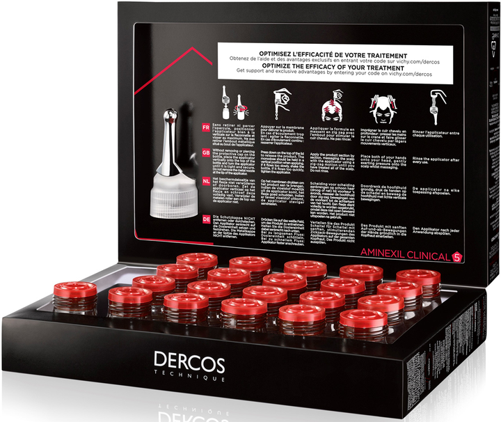 VICHY DERCOS AMINEXIL CLINICAL 5 Kuracja przeciw wypadaniu włosów o kompleksowym działaniu opracowana przez dermatologów VICHY, pomocna w zwalczaniu nawracającego lub stałego wypadania włosów oraz wypadania włosów wywołanego stresem i zmęczeniem.