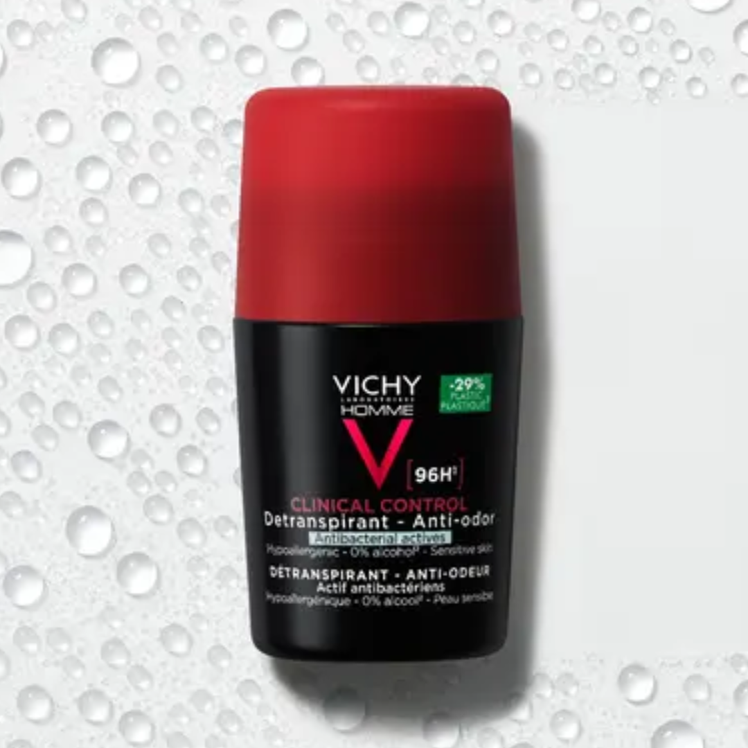Odkryj CLINICAL CONTROL 96H – pierwszy antyperspirant dla mężczyzn od VICHY z antybakteryjnym składnikiem zapewniający aż 96 godzin uczucia suchości i ochrony antyperspiracyjnej.