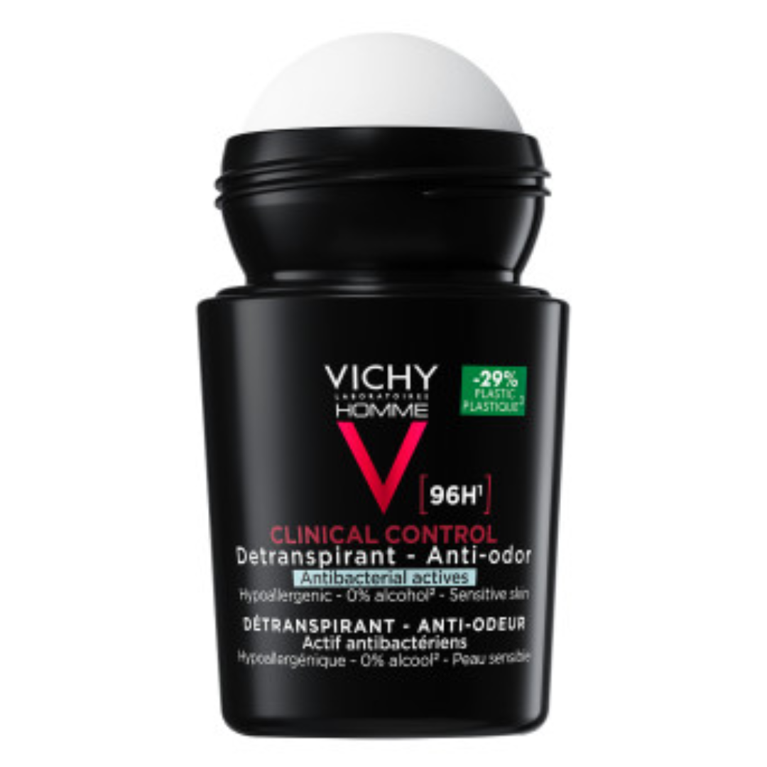 Odkryj CLINICAL CONTROL 96H – pierwszy antyperspirant dla mężczyzn od VICHY z antybakteryjnym składnikiem zapewniający aż 96 godzin uczucia suchości i ochrony antyperspiracyjnej.