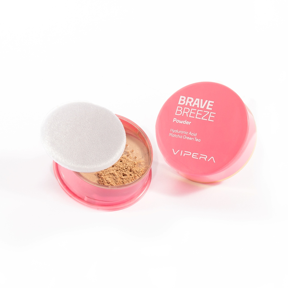 Pielęgnacyjny puder sypki BRAVE BREEZE o przyjemnym, zapachu Matcha Green Tea. Oddychająca, lekka formuła BRAVE BREEZE idealnie wtapia się w skórę, matuje ją i wygładza, nie dając uczucia obciążenia. Lekko tonujący neutralny, beżowy odcień szczególnie polecany do średniej jasności cery. Subtelnie utrwala makijaż i zapewnia świeży, naturalny wygląd przez cały dzień.